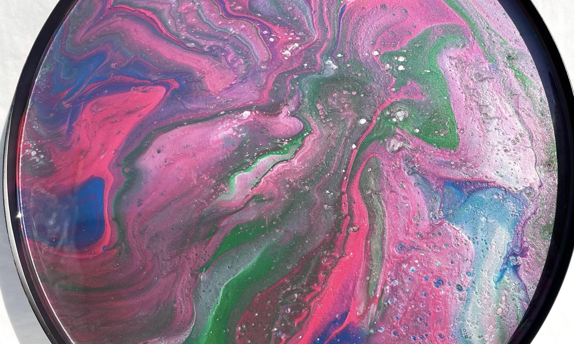 Jeg heter Rose og er en dame som maler på hobbybasis. Jeg bruker en teknikk som kalles "Acrylic Pouring". Dette er en teknikk der jeg maler med akrylmaling, og videre bruker Resin for en blank overflate.